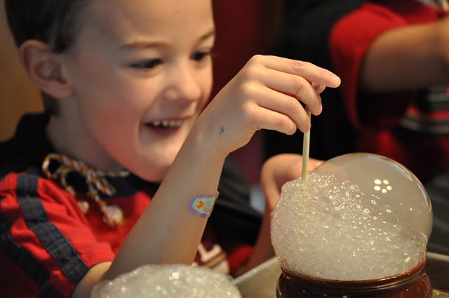 Amazingly, this is the first Harry Potter party I’ve come across- and it’s a winner! Check out the all of the activities for Nate’s 7th birthday- a game of Quidditch, potion making, a ‘sorting hat’ (using a baby monitor to make it ‘speak’), and a Golden snitch cake- which spilled out ‘every flavor beans’ when cut open. For more of Emily creative touches check out Martha Shmartha.