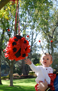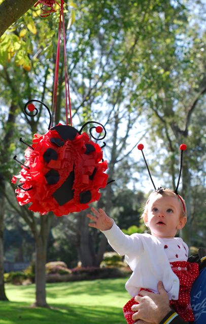 Too cute to resist ladybug first birthday for cutie pie Ruby. Check out that homemade lady bug pinata! Much more here.