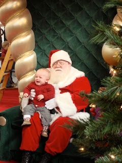 A large tree fell on our house at 4:30 this morning…with substantial damage…so I think I will be taking a week off from the blog to deal with it! Hope you’ll meet me back here next week. Until then, an image of my son with Santa Claus. He looks about as scared of him as I was when I heard the loud thud!